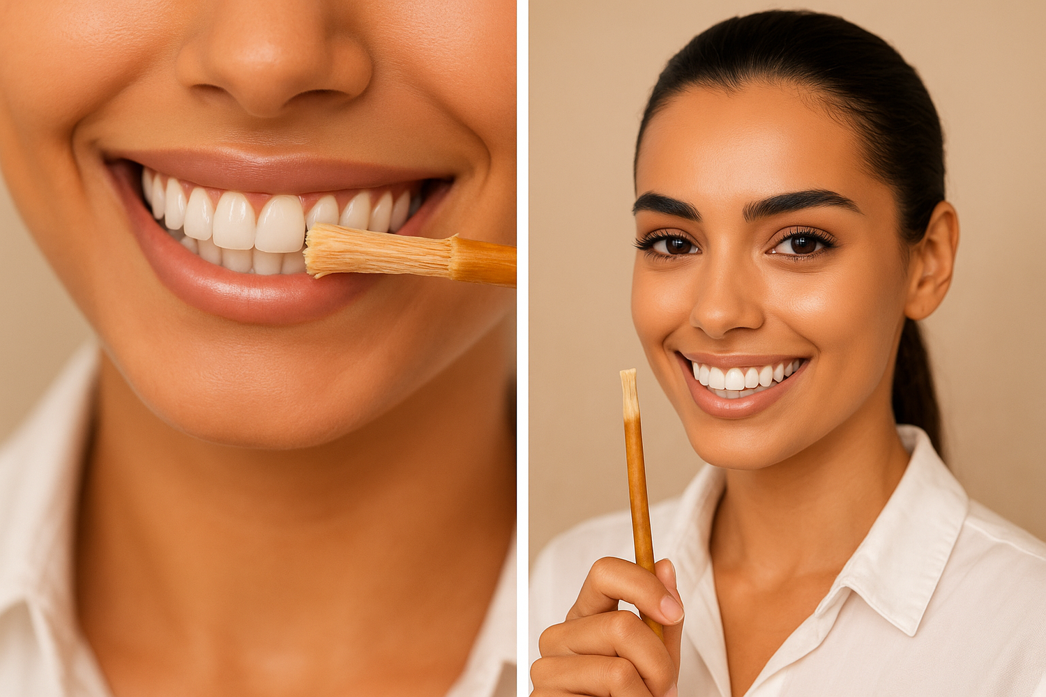 Basta tagliare la corteccia, inumidire leggermente le setole e lavarsi i denti.